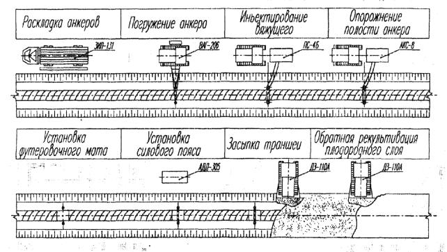 Рисунок 1 - Схема балластировки трубопровода анкер-инъекторами