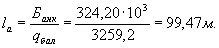 Значение la = 99,47м не удовлетворяет условию прочности трубопровода. Расстояние между анкерными устройствами необходимо принять равным