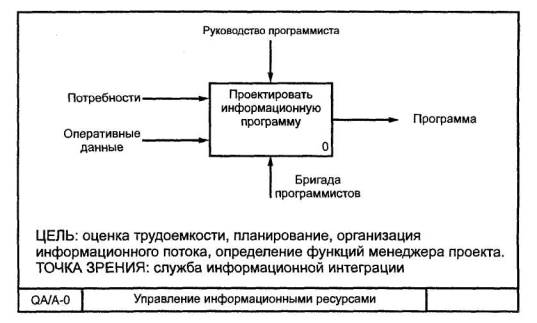 2.10 диаграмма А-0 (А минус ноль): Специальный вид (контекстной) диаграммы IDEF0, состоящей из одного блока, описывающего функцию верхнего уровня, ее входы, выходы, управление, и механизмы, вместе с формулировками цели модели и точки зрения, с которой строится модель.