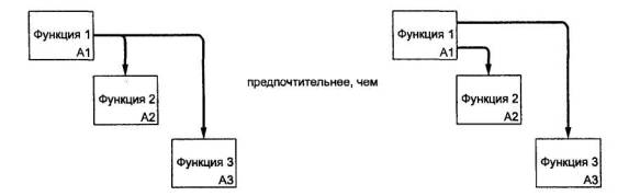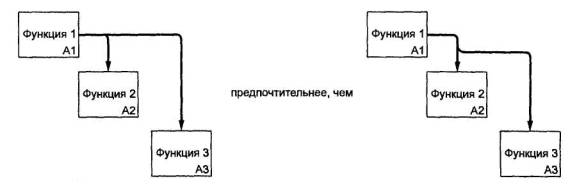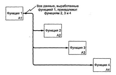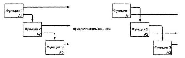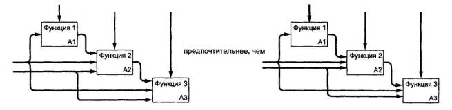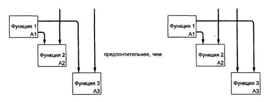 4.7 Отделение «организации» от «функций». При разработке моделей следует избегать изначальной «привязки» функций исследуемой системы к существующей организационной структуре моделируемого объекта (предприятия, фирмы). Это помогает избежать субъективной точки зрения, навязанной организацией и ее руководством. Организационная структура должна явиться результатом использования (применения) модели. Сравнение результата с существующей структурой позволяет, во-первых, оценить адекватность модели, а во-вторых - предложить решения, направленные на совершенствование этой структуры.