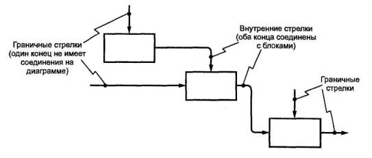 2.7. граничная стрелка: Стрелка, один из концов которой связан с источником или потребителем, а другой не присоединен ни к какому блоку на диаграмме. Отображает связь диаграммы с другими блоками системы и отличается от внутренней стрелки.