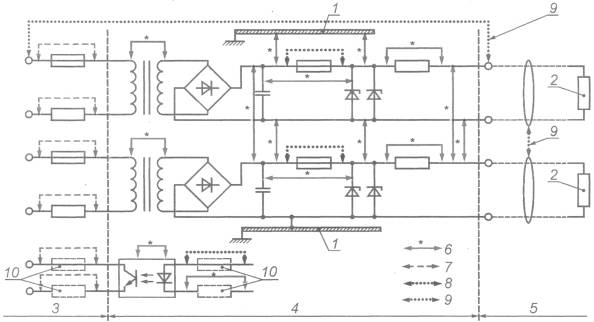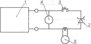 1 - испытуемая цепь; 2 - нагрузка; 3 - ртутный выключатель; 4 - вольтметр высокого сопротивления; 5 - щуп для измерения величины тока