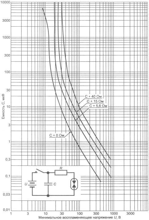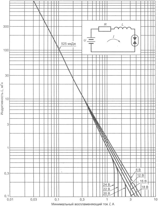 Если в цепи могут возникнуть напряжение и ток переходного процесса, тогда допустимы значения напряжения и тока выше значений, приведенных в приложении А, при условии, что может быть показано, что энергия переходного процесса, способная вызвать воспламенение взрывоопасной атмосферы, ограничена значениями, указанными в 10.1.5.3. В качестве примера можно рассмотреть случай, когда источник питания, в котором используется последовательное полупроводниковое токоограничительное устройство, регистрирует большой ток и отключается, но при этом ток кратковременного переходного процесса передается на нагрузку. Другой пример, когда цепь индикации напряжения включает тиристор, подключенный параллельно нагрузке, но высокое напряжение может короткое время присутствовать на нагрузке до того, как сработает тиристор.
