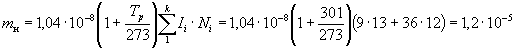 тi - масса i-го вещества, поступающего в помещение в единицу времени, кг/с |