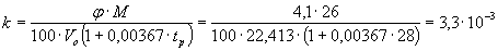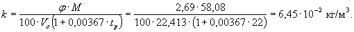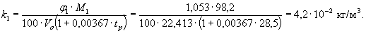 k - концентрация горючих газов или паров, равная нижнему концентрационному пределу распространения пламени, кг/м3.