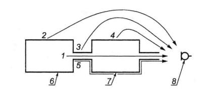 3.14 потери отражения на выходе (outlet reflection loss) Dm, дБ: Разность уровней звуковой мощности, падающей на открытый конец канала и прошедшей через него.