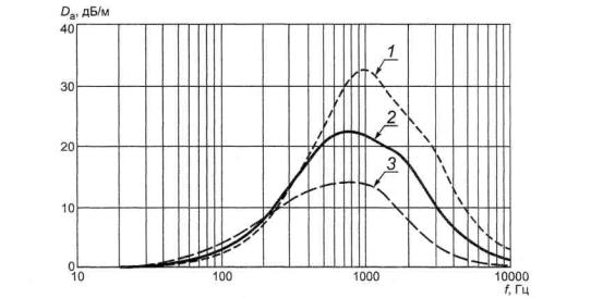 Примечание - Основная мода испытывает наименьшее ослабление. В узких и протяженных трубах особенно сильно ослабляются моды высших порядков.