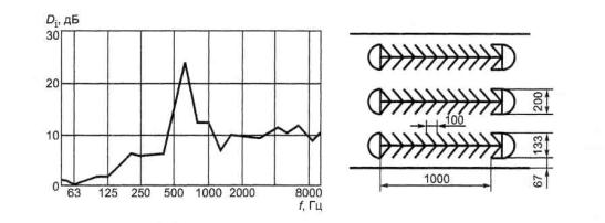 Как видно из таблицы В.1 и рисунка В.1, реальные значения ослабления в 1/3-октавных полосах частот совпадают с заявленными, однако заявленное производителем октавное значение ослабления 7 дБ существенно превышено для осевого вентилятора. Эффективность глушителя в данном случае значительно лучше, чем требуется. Напротив, соотношение между 1/3-октавными составляющими спектра шума радиального вентилятора с наклонными лопатками таково, что в октавной полосе достигается ослабление лишь 5 дБ. Заявленное значение 7 дБ в данном случае не было подтверждено при лабораторных испытаниях, выполненных в соответствии с [1].
