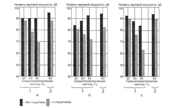 Отличия для октавной полосы 63 Гц являются наиболее важными на практике. В таблице В.1 приведен пример преобразования 1/3-октавныхзначенийослаблениявоктавные. 1/3-октавныезначения (50,63,80 Гц) получены на основе результатов измерений при лабораторных испытаниях искусственного источника розового шума и двух типов вентиляторов. Указанные октавные значения - реально измеренные.