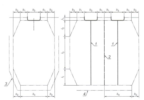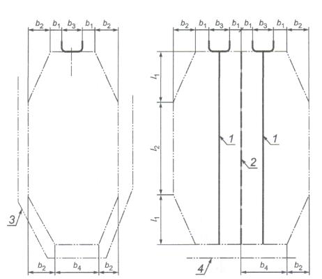 b1 = b2 = 1000 мм; b3 = ширине горки; b4 = b3 + 2b1 |
