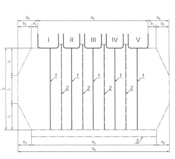 b1 = 500 мм; b2 = 1000 мм; b3 = ширине горки; b4 = b1 + b2; b5 = b3 + 2b1; b6 = b3 + 2b4 |