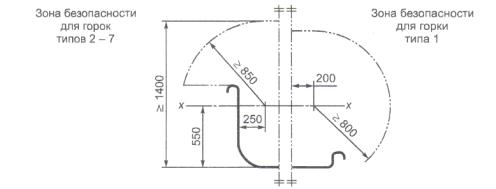 Элементы конструкции горки допускается располагать на расстоянии от 650 до