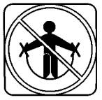 4.3.2 Для изображения запрещенных позиций спуска и запрещенного поведения при спуске используют квадрат синего цвета с закругленными углами размерами не менее 200´200 мм с вписанным в него кругом белого цвета, с кольцом красного цвета и полосой красного цвета, пересекающей круг по диаметру в направлении углов квадрата, и изображениями фигур черного цвета.