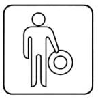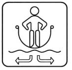 4.3.1 Для изображения разрешенных позиций спуска и правил поведения при спуске используют квадрат синего цвета с закругленными углами размерами не менее 200´200 мм и изображениями фигур белого цвета.