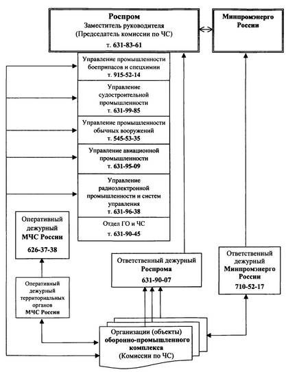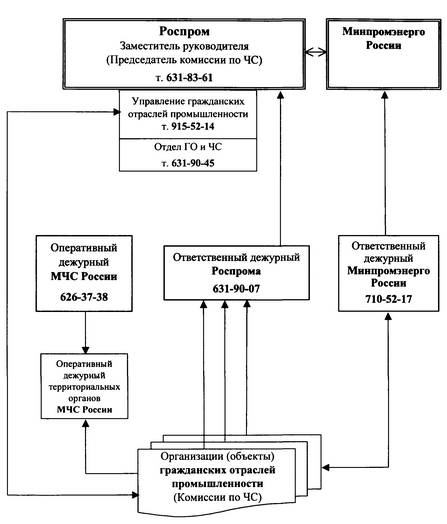 4. Начальникам Управлений Роспрома, руководителям организаций для обмена оперативной информацией о чрезвычайных ситуациях руководствоваться Схемами информационного обеспечения функциональных подсистем предупреждения и ликвидации чрезвычайных ситуаций в организациях (на объектах) оборонно-промышленного комплекса, гражданских отраслей промышленности и уничтожения химического оружия (Приложения 6, 7, 8 соответственно).