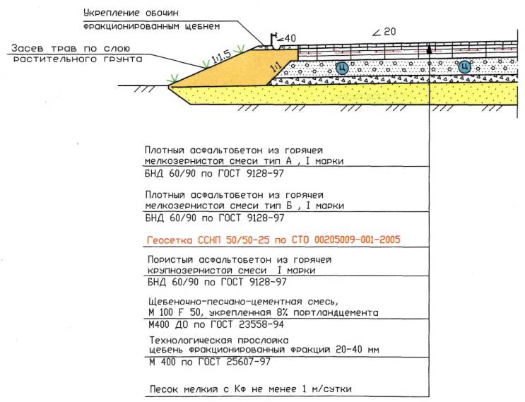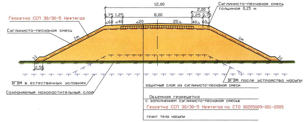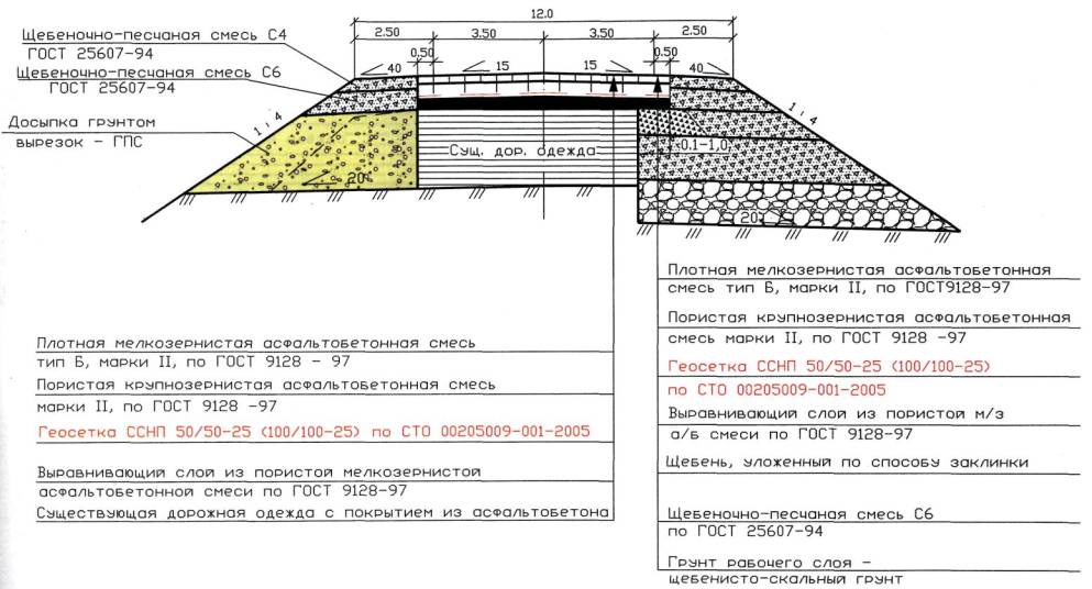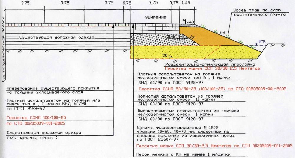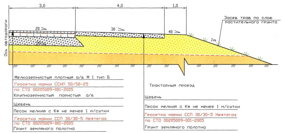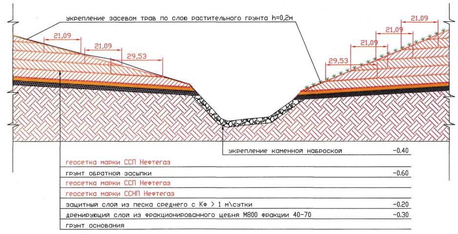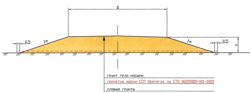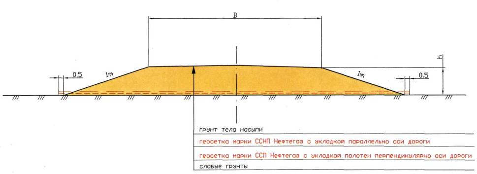12.2 Технологическая схема устройства прослоек из геосеток «Нефтегаз» :