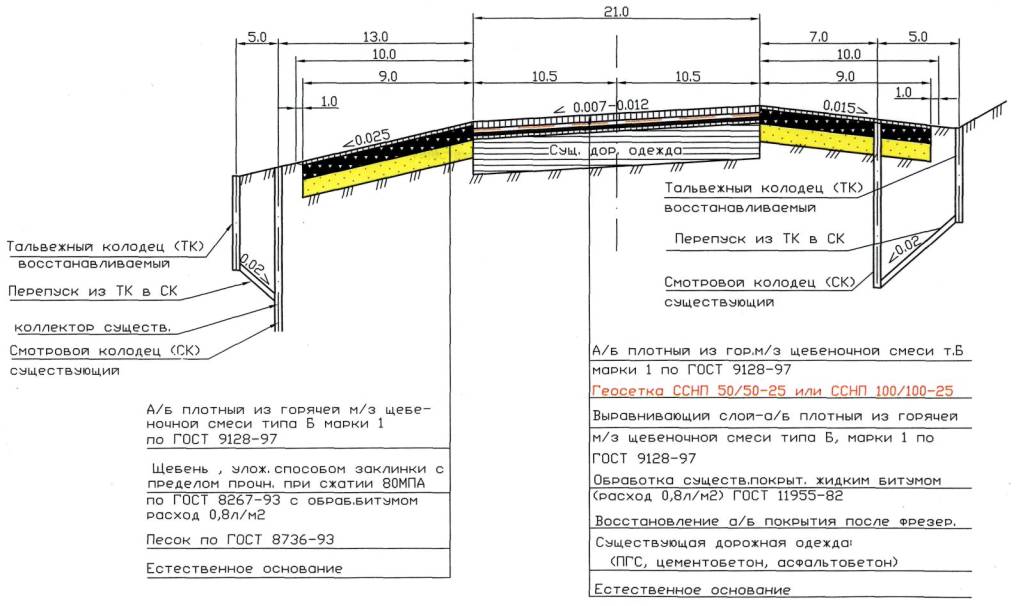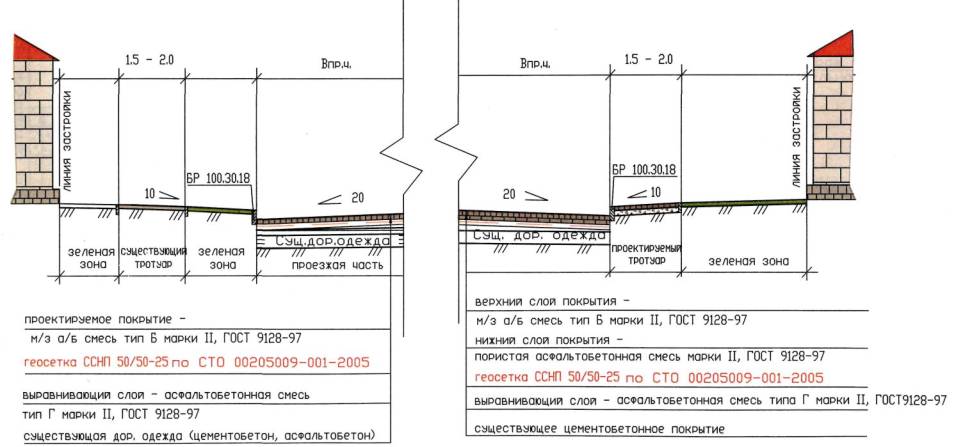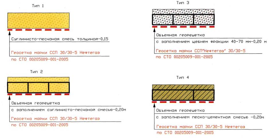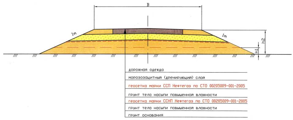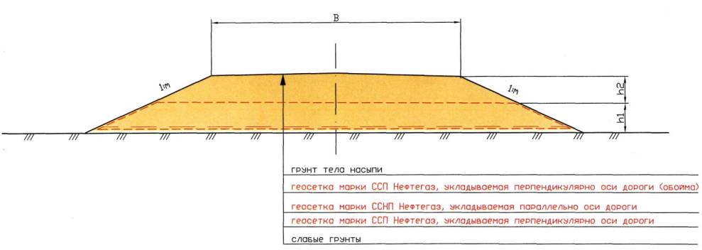6.2 Технологическая схема устройства прослоек из геосеток «Нефтегаз» в два слоя:
