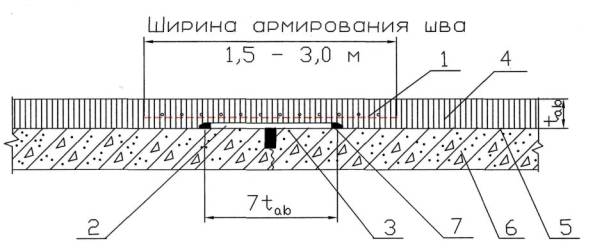 10.2.1 На участках существующих жестких покрытий, имеющих сквозные трещины или швы со средним расстоянием между ними менее 4 м, рекомендуется применять сплошное армирование, а в остальных случаях - ленточное над трещинами и швами бетонных плит.
