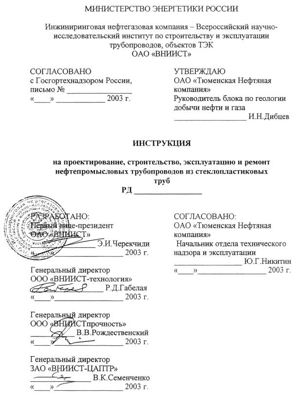 Инструкция на проектирование, строительство, эксплуатацию и ремонт трубопроводов из стеклопластиковых труб устанавливает технические характеристики нефтепромысловых трубопроводов из стеклопластиковых труб, обеспечивающие безопасность людей, сооружений и окружающей среды в зонах прокладки этих трубопроводов при выполнении ими основной задачи по транспорту продукта