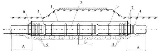 - через железные- и автодороги - участок трубопровода, прокладываемый под железной и автомобильной дорогой