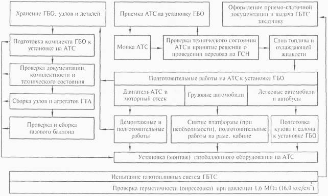 Содержание работ по выполнению указанных операций зависит от типа АТС и мест размещения газовых баллонов и газотопливной аппаратуры (ГТА).