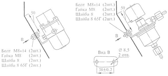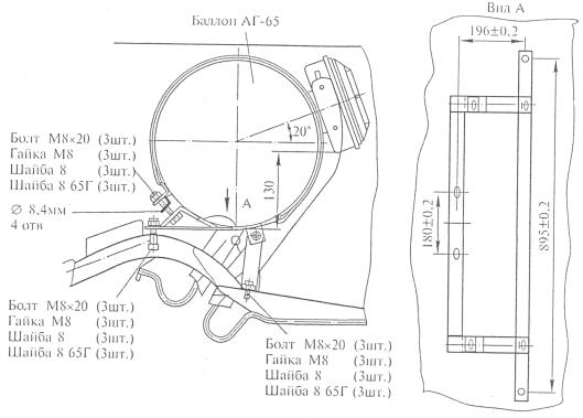 6 - прокладка кронштейна; 7 - винт М10 × 20; 8 - хомут крепления баллона;