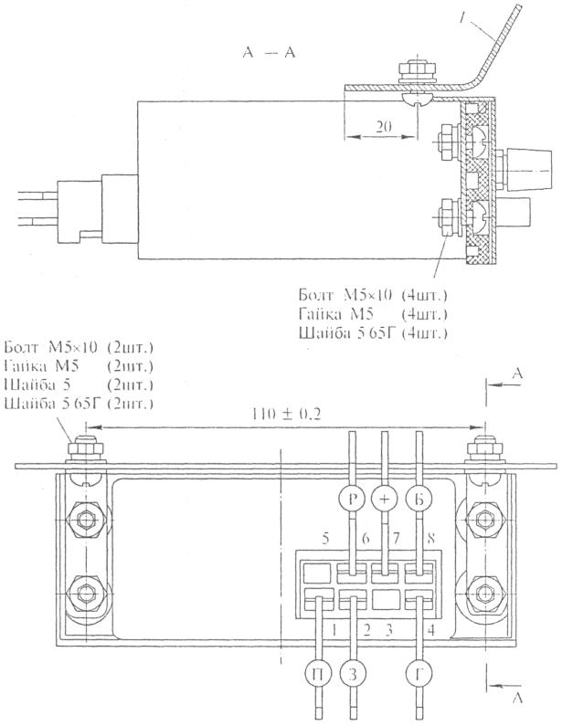 1 - кронштейн; 2 - шайба; 3 - болт М10 × 18; 4 - гайка М10; 5 - шайба 10;