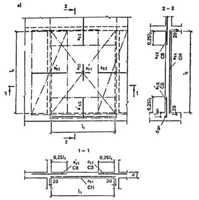 Плиты размером на комнату при опирании по контуру, двум длинным и одной короткой или только двум длинным сторонам рекомендуется армировать сварными сетками, расположенными в нижней (растянутой) зоне плиты. Арматурные стержни, расположенные вдоль короткого пролета плиты, рекомендуется частично не доводить до опор в соответствии с изменением изгибающих моментов вдоль пролета плиты. В случае, если до опор не доводится половина стержней, разреженное армирование принимается на участках шириной с каждой стороны плиты не более а = 0,14 l — 20d, где l — длина короткого пролета плиты, d — диаметр стержней.