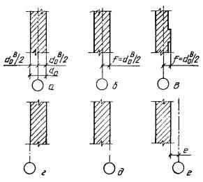 4.6. Внутренняя координационная плоскость наружных самонесущих и навесных стен должна совмещаться с координационной осью (черт. 9д) или смещаться на размер е с учетом привязки несущих конструкций в плане и особенности примыкания стен к вертикальным несущим конструкциям или перекрытиям (черт. 9е).