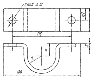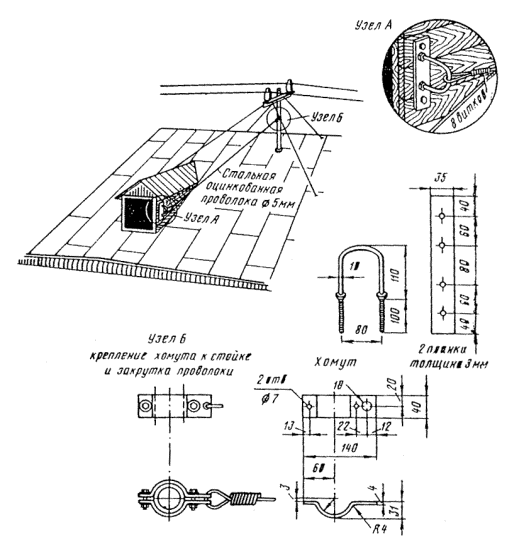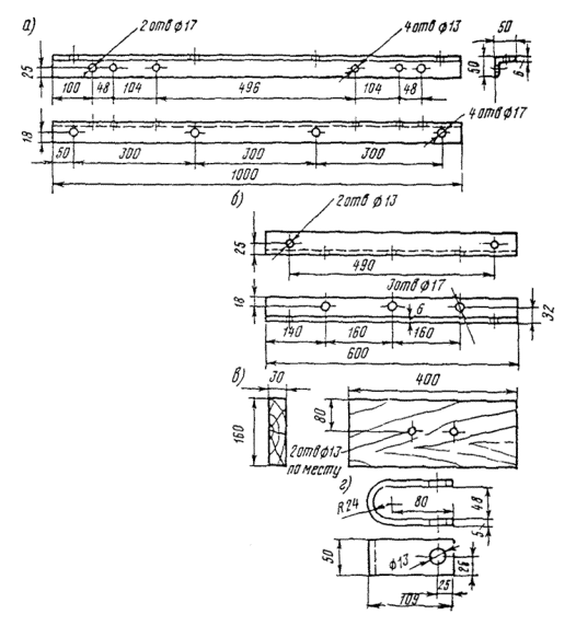 Для крепления стойки к стропильной балке, а траверс и ступенек к стойке, применяют хомуты (рис. 1.11 и табл. 1.2).