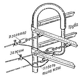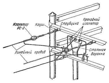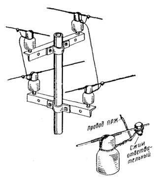 Для устройства ответвлений радиосети на промежуточной стойке применяют траверсу одноштырную (рис. 1.10).