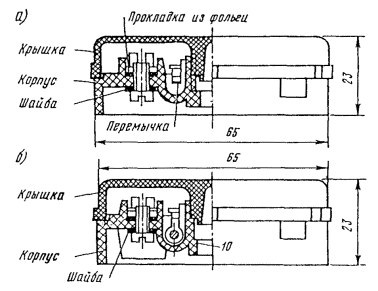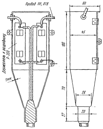 5. Детали контура монтируются на отдельной панели из изоляционного материала и помещаются в металлический влагонепроницаемый кожух типа линейного трансформатора, который заливается церезином или другой изолирующей массой.