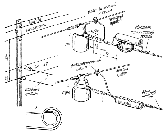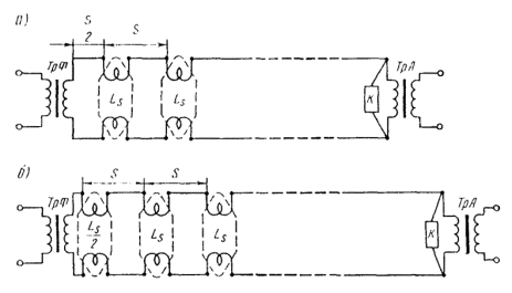 Для магистральных фидерных линий из кабеля МРМ (МРМП) индуктивность пупиновских катушек 20 мГ. Схема включения катушки приведена на рис. П.3.2.