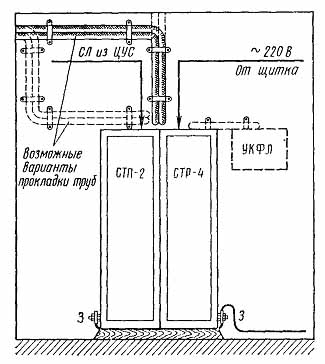 при устройстве местного отвода тепла шкафы усилителей типов ТУ-5-3, ТУ-5-4 могут быть установлены вплотную друг к другу (рис. 2);