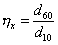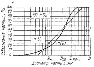 где hк = dn/d100-n параметр неоднородности грунта (по В.И. Кондратьеву), определяемый по интегральной кривой распределения его частиц по крупности так, как это показано на рис. 1; d50 - средний по обеспеченности размер частиц грунта.