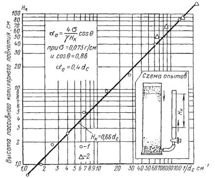 Для монозернистых грунтов (с одинаковыми по крупности частицами) при наиболее вероятной их пористости, близкой к 0,4, величина поперечника d0 » 0,2d50.