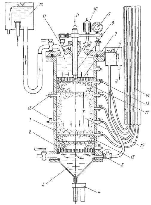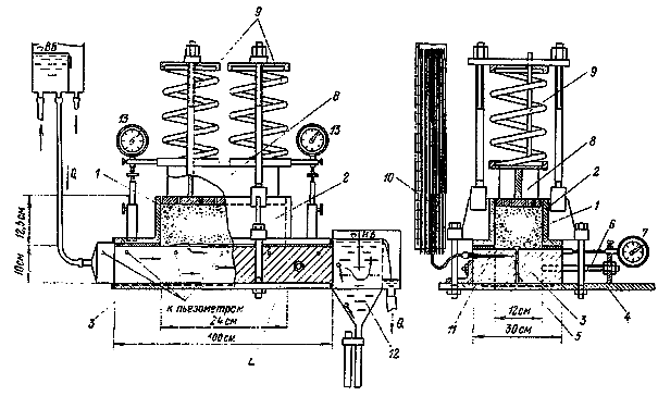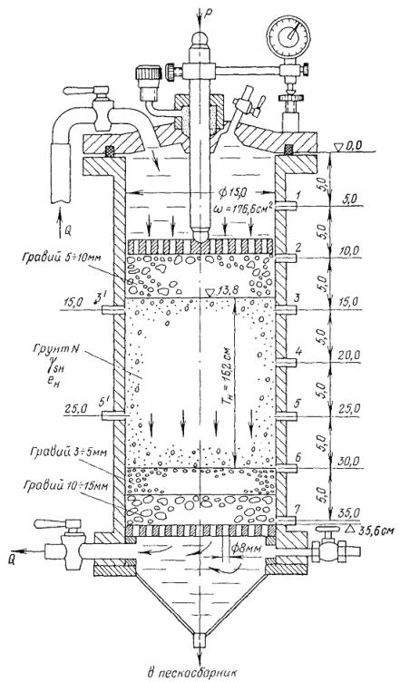 Рис. 26. Прибор для определения фильтрационной прочности грунта в условиях контактного выпора