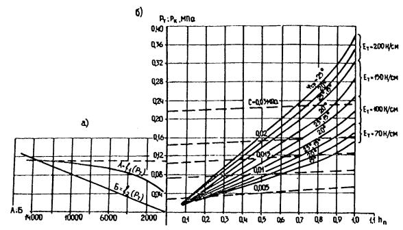 Задавшись толщиной насыпи hn для данных значений fср; Е; Сс, по графикам упомянутого рисунка находим значения рт и ркр. Дальнейший расчет и проверка условий (17) и (18) проводятся так же, как указано выше.