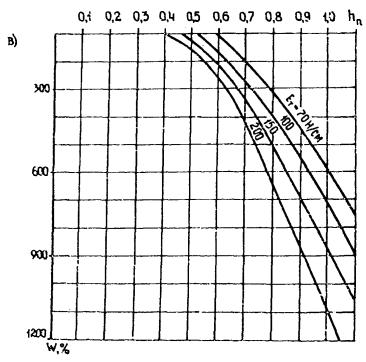 Определение толщины насыпного слоя hn может быть также выполнено с предварительным построением итогового графика hn = f(W0) для конкретных значений fср и Сс (см. рисунок настоящего приложения, позиция «в»).