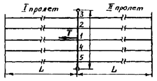 При определении нагрузки на опорные, поддерживающие или фиксирующие устройства расчетную длину пролета принимают равной среднему арифметическому от длины двух пролетов, примыкающих к рассчитываемой опоре.