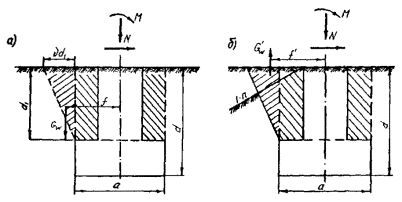 нераздельные опоры с обратной коничностью в нижней части, устанавливаемые в выштампованные котлованы;