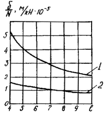 1.8. При расчете опор контактной сети по деформациям (предельному состоянию второй группы) следует определить изменение прогиба опоры от воздействия временных нормативных нагрузок, добавляя к ним нагрузки от изменения натяжения проводов. Изменение упругого прогиба консольных опор на уровне контактного провода (без учета поворота фундамента) не должно превышать ± 65 мм, а упругого прогиба вершины опор гибких поперечин должно быть не более 1/150 их высоты.