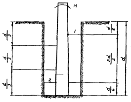 2. На свежеотсыпанных насыпях, простоявших менее 1 года, опоры контактной сети рекомендуется не устанавливать, если относительная плотность грунта откосной части насыпи на глубине 0,2 м и на глубине 1,5 м менее 0,9 Пробы грунта для определения плотности отбирают на откосе свежеотсыпанной насыпи на расстоянии 0,3 м от бровки с той стороны, где останавливаются опоры.