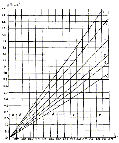 2.7. Относительная деформация морозного пучения грунта определяется по графикам (рис. 2.1) с использованием параметра Rf вычисляемого по формуле