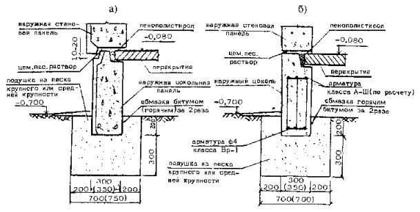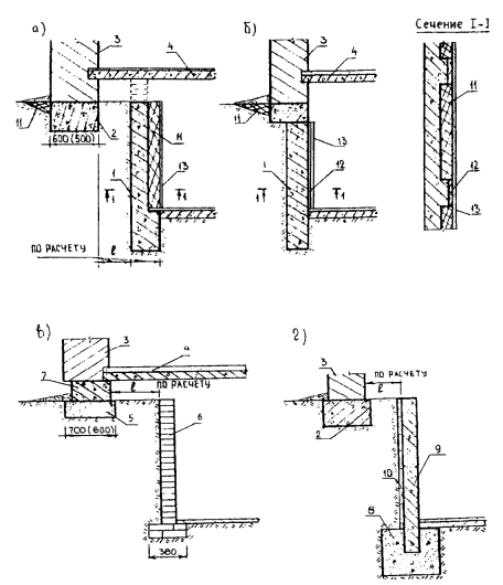 Основной принцип конструирования мелкозаглубленных фундаментов зданий с несущими стенами на пучинистых грунтах заключается в том, что ленточные фундаменты всех стен здания объединяются в единую систему и образуют достаточно жесткую горизонтальную раму, перераспределяющую неравномерные деформации основания. При мелкозаглубленных столбчатых фундаментах рама формируется из фундаментных балок, которые жестко соединяются между собой на опорах.