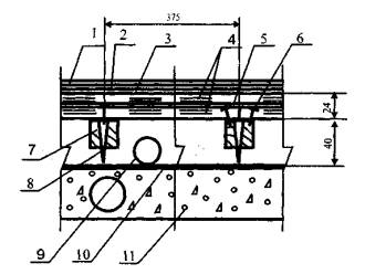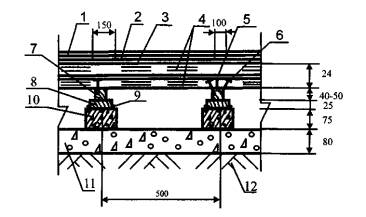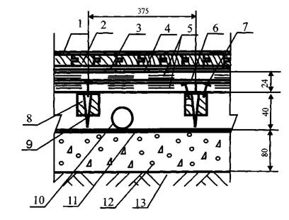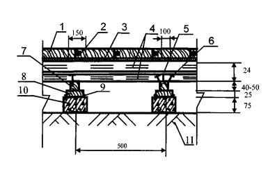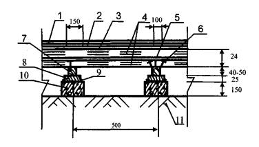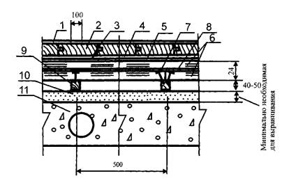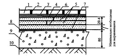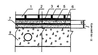 3.3. Нескальное грунтовое основание под бетонный подстилающий слой должно быть предварительно укреплено щебнем или гравием, утопленным на глубину не менее 40 мм.