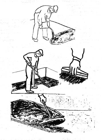 1.12. Сразу же по мастичной обмазке расстилают армирующую основу (базальтовые, стеклянные или синтетические ткани), а на следующий день покрывают ткань битумно-каучуковой мастикой типа БСКМ (см. рис. 1.1, рис. 1.3).