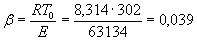 2. Для температуры Т0 = 313 К вычислим параметры β и γ по уравнениям (8) и (9):