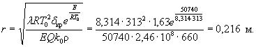 - предэкспоненциальный множитель Qk0/λ =2,46·108 м·К·кг-1.
