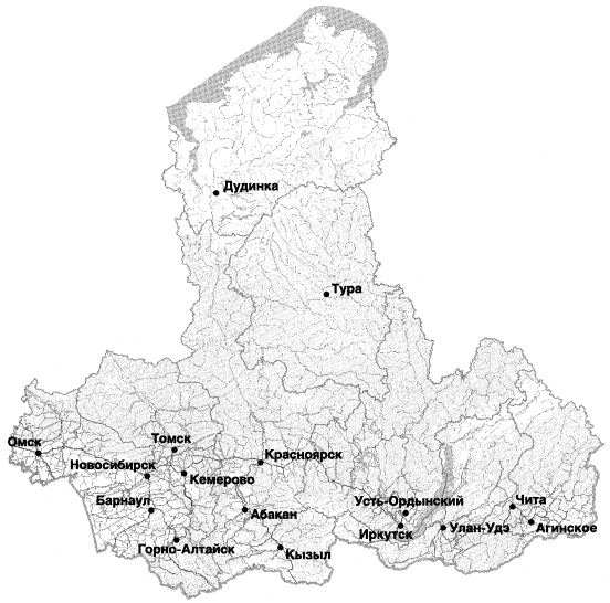 Республика Алтай, Республика Бурятия, Республика Тува, Республика Хакасия, Алтайский край, Красноярский край, Иркутская обл., Кемеровская обл., Новосибирская обл., Омская обл., Томская обл., Читинская обл., Агинский Бурятский автономный округ, Таймырский (Долгано-Ненецкий) автономный округ, Усть-Ордынский Бурятский автономный округ, Эвенкийский автономный округ